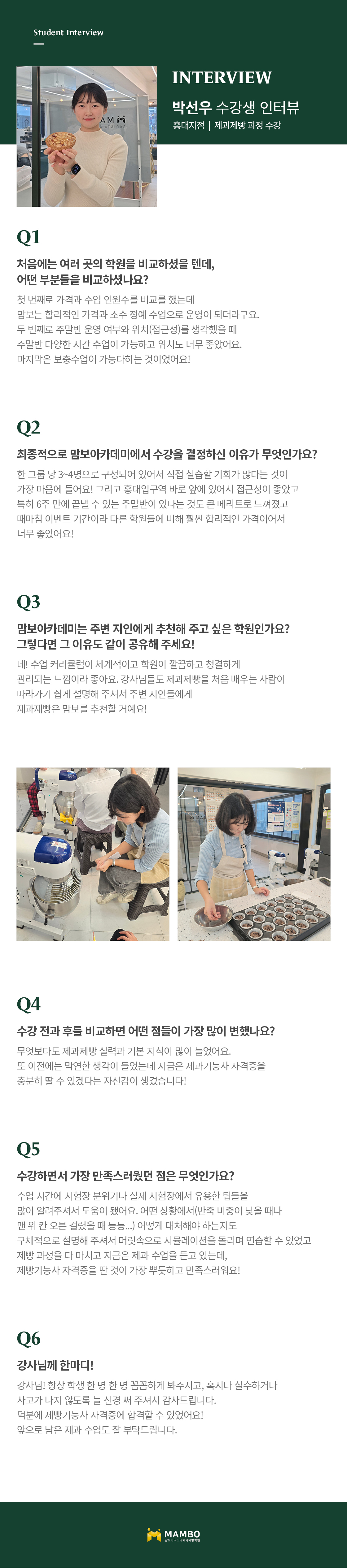 교육의 기반을 달리하여 학생의 기회를 잡아주며 직원의 기강이 태만하지 않은 맘보바리스타제과제빵학원